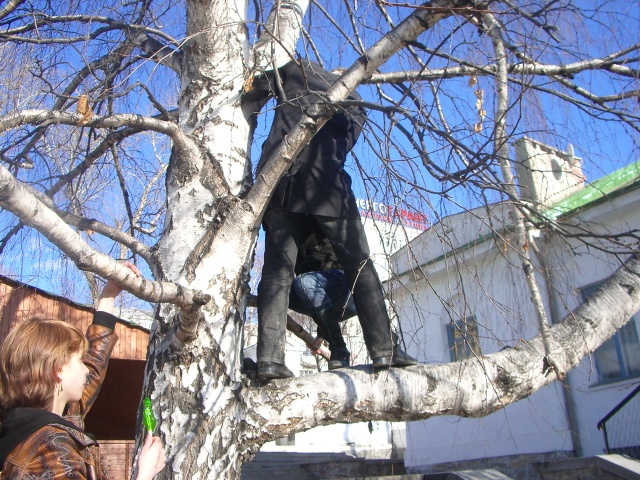 Danili4 помагает Oksе залесть на дерево. А ада ест лединец