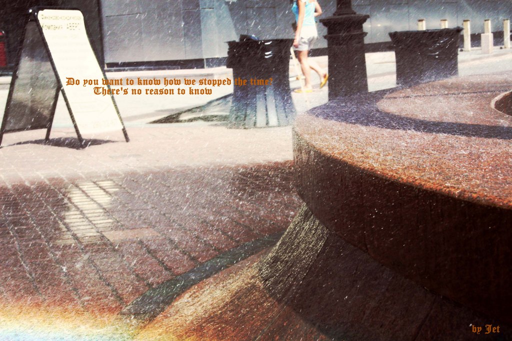 Ich werf den Stein zu meinem Spass das Wasser sich im Kreis bewegt der Alte sieht mich traurig an und hat es wieder glatt gefegt