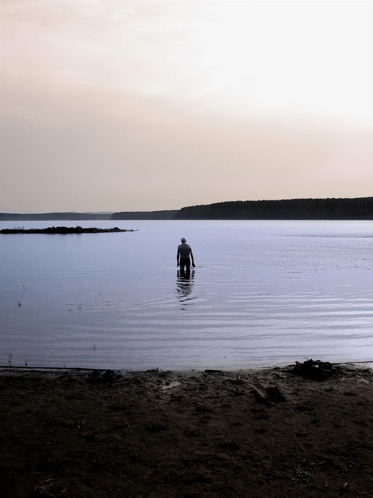 сидела на берегу.. пожилой мужчина решил искупаться... блин ниче особенного в кадре.. но кажеться , что он как утопленник.. плывет в свой последний путь.. бррр аж мурашки